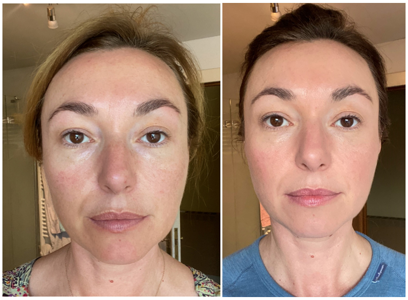 Op de foto hiernaast zie je alvast mijn eigen eerlijk resultaat. Ik draag op geen van beide foto's make-up en ze zijn op hetzelfde tijdstip genomen, zonder filters. De linkse foto is een foto voor ik zelf met Face Yoga aan de slag ging. De rechtse foto is een foto na vijf maanden consequent oefenen. De meest spectaculaire verandering zag ik echter al na zo'n drietal weken. Ik nam deze foto's niet als Face Yoga lesgever, maar om de resultaten van mijn eigen traject objectief vast te leggen. Zoals je ziet is er een verbetering van de teint, een verbetering in de lichaamshouding, een verbetering van mijn gezichtscontouren en een algemeen frissere en meer wakkere uitstraling. En dat zonder dat ik de rest van mijn verzorgingsritueel heb veranderd.